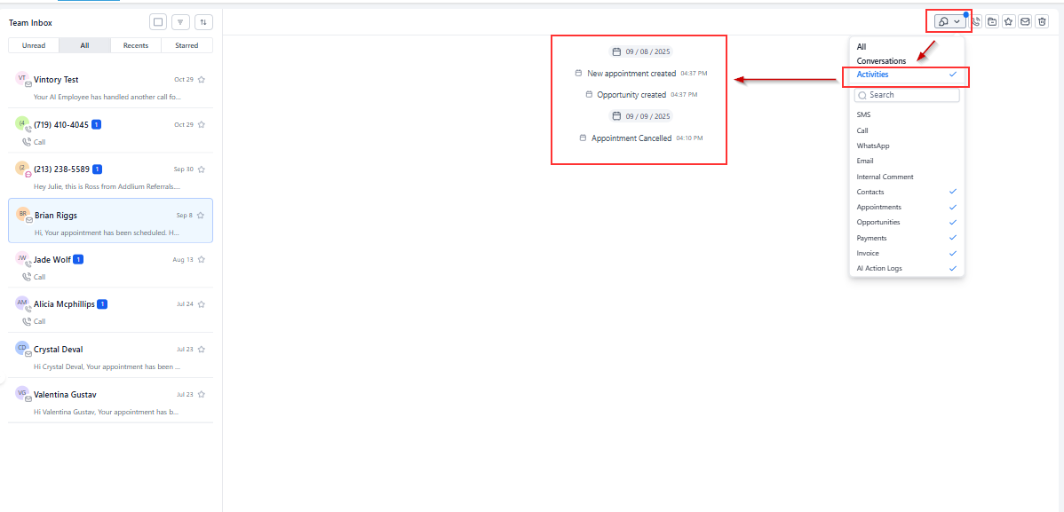 Anytime an appointment is created, rescheduled, or even canceled, you'll find an activity card in the conversation panel. This feature is designed to keep you updated without the need to juggle multiple screens. By clicking 'View Appointment' within the card, you can edit the appointment details, all while staying rooted in the conversation panel.