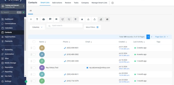 Across the top is the "All" tab. This will include all of the contacts you have in the system.