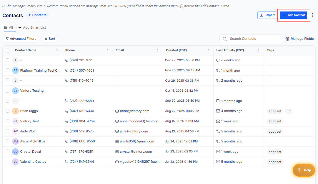 - Navigate to the Contacts tab. Click on the "+" icon to Add Contact. Complete the contact information and click on Save.