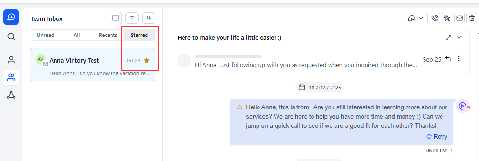 - Mark conversations as Starred: All conversations will be marked as starred