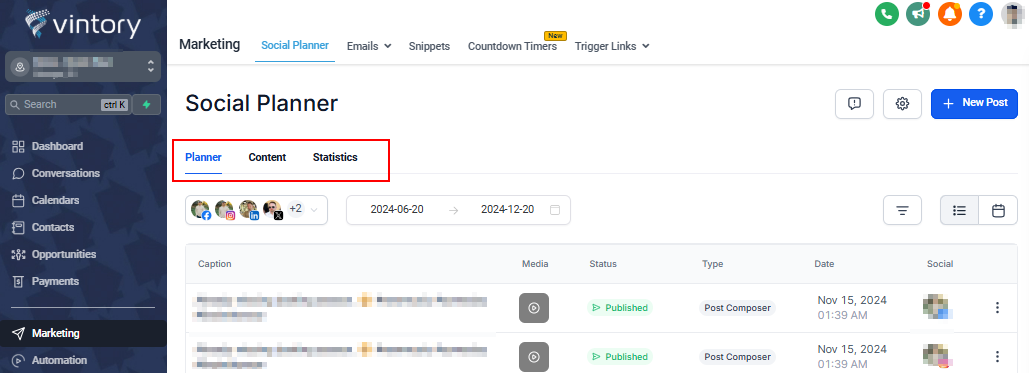 - If you've been using a separate platform for your social media content, and you're able to export that content into a CSV file, you can now upload it into your Vintory account!