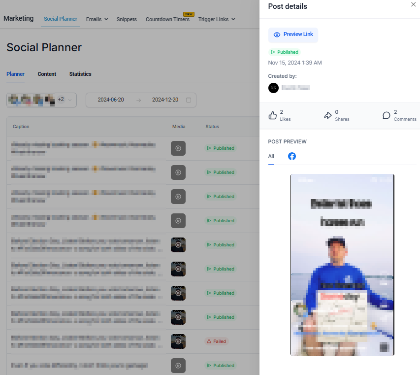 You can easily access and manage your scheduled posts for all selected accounts, available in both a convenient list view and a user-friendly calendar view.